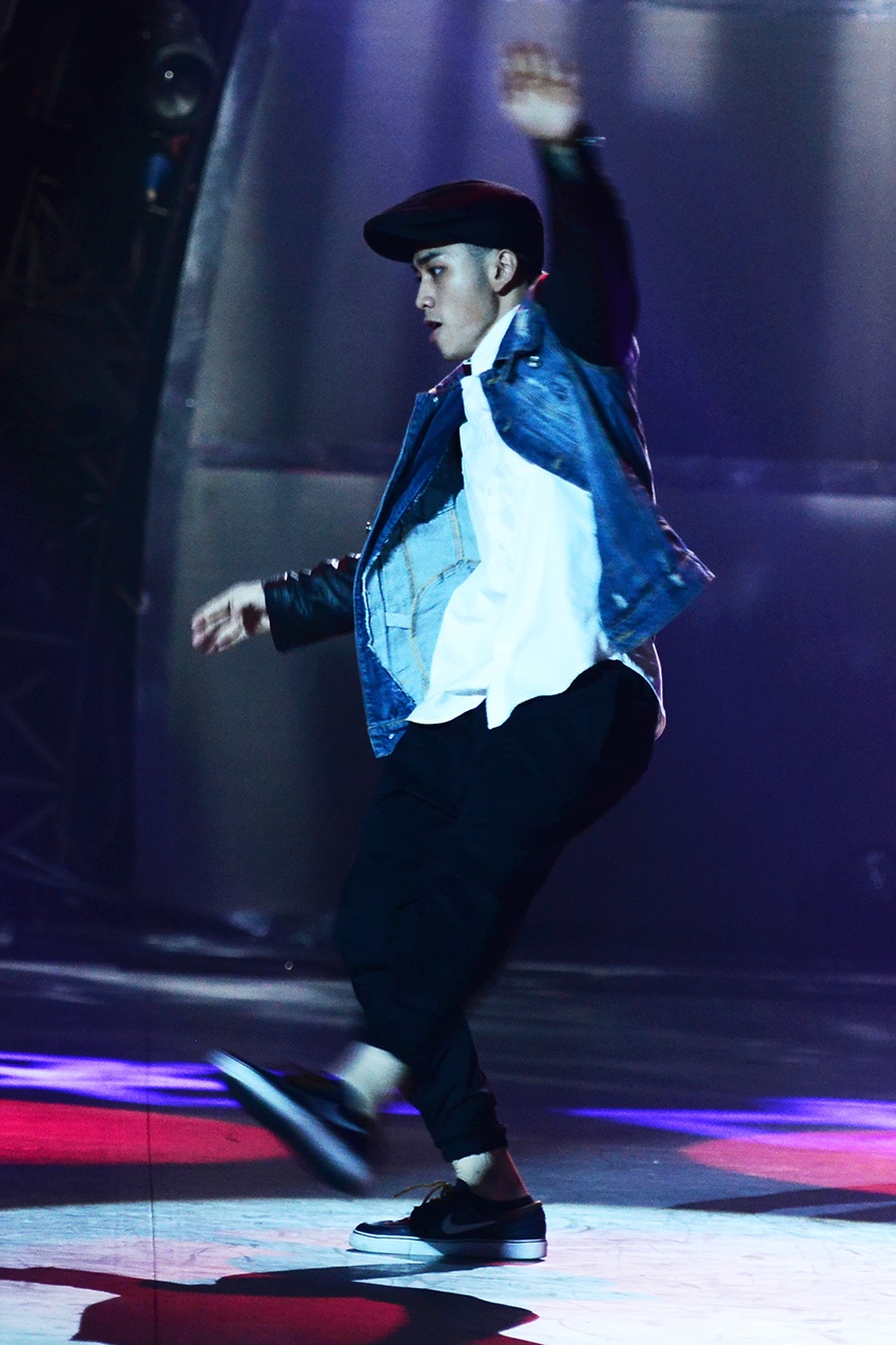 ” Ngọc Thịnh với sở trường hip hop đã thu hút người xem bằng những động tác bắt mắt và biểu cảm sinh động trên nền bản hit của Justin Timberlake Strawberry subblegum. |