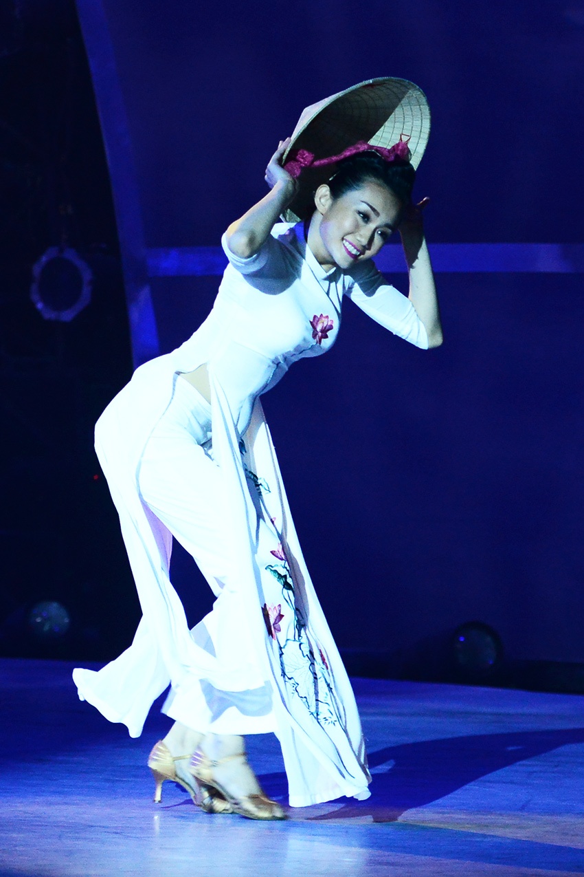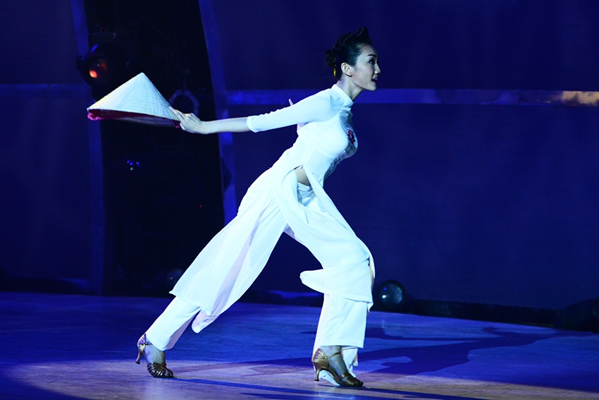 Mỹ An đột phá trên nền nhạc Quê hương với múa đương đại. Lần đầu tiên nữ kiện tướng dancesport dám lột bỏ thế mạnh nhưng vẫn tỏa sáng với bài múa sâu lắng. |