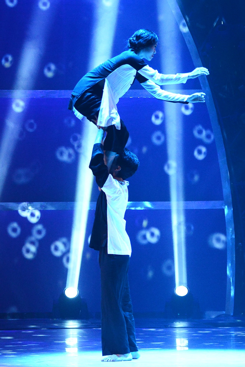 Cú nhào lộn độc đáo của Hoàng Minh và Ngọc Anh. |