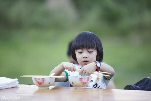 | Kimi giúp bố dọn bát đũa trước khi ăn cơm. |