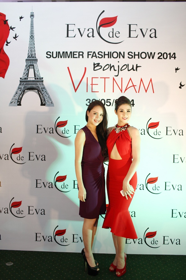 | Hoa hậu Ngọc Hân và Á hậu Ngọc Oanh - một trong những đại diện vẻ đẹp Việt Nam cùng đến tham dự show diễn vì hòa bình của Eva de Eva. |