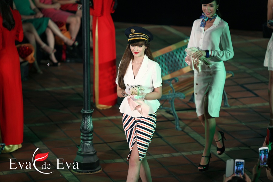| Phần trình diễn mẫu thiết kế mang âm hưởng của thời trang dạo phố đậm phong cách Pháp của Eva de Eva. |