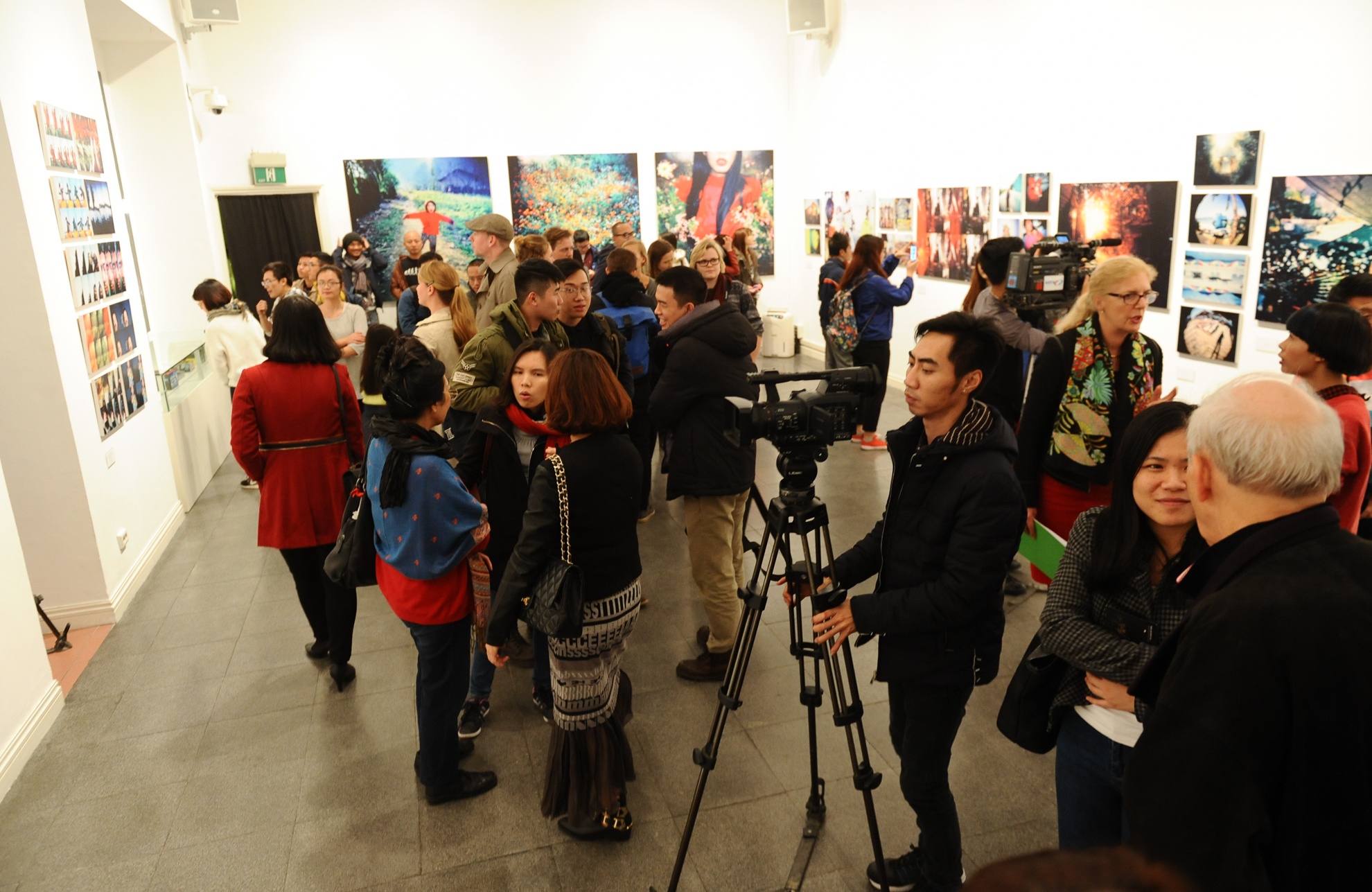 Tối 13/1, hàng trăm khán giả, bạn bè đến tham dự buổi khai mạc triển lãm “Không buồn được” của nữ nhiếp ảnh gia Maika Elan tại Viện Goethe, Hà Nội. |