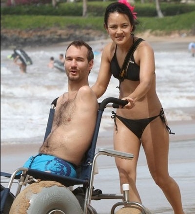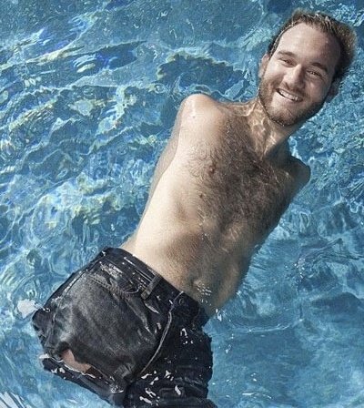 | Dù bị dị tật bẩm sinh nhưng Nick luôn sống vui vẻ, yêu đời và tự tin. |