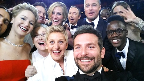 | Bức ảnh gồm có Jennifer Lawrence, Jared Leto, Channing Tatum, Julia Roberts, Bradley Cooper, Brad Pitt, Angelina Jolie, Lupita Nyong'o, … ngay lập tức gây bão trên mạng Twitter và các trang mạng xã hội khác. |