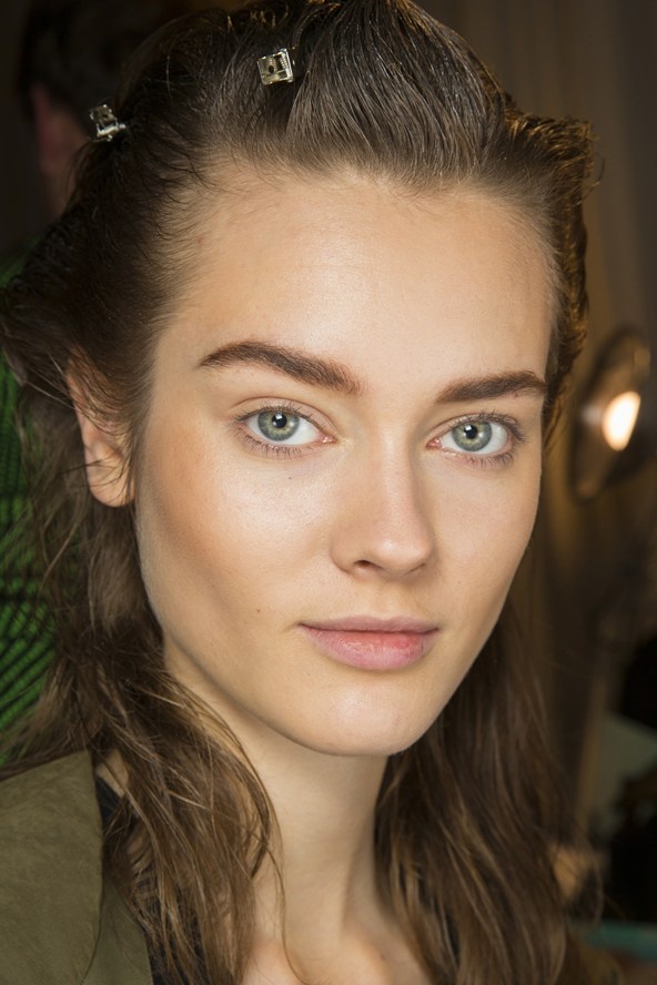 | Theo tiêu chí màu trầm của mùa đông, show diễn của nhà thiết kế Phillip Lim giữ cho phần trang điểm của người mẫu rất đơn giản với chân mày rậm tự nhiên, da mịn trong và môi nude. Tóc người mẫu được uốn lọn nhẹ nhàng và xức dầu bóng lên chân tóc tạo vẻ ướt át. |