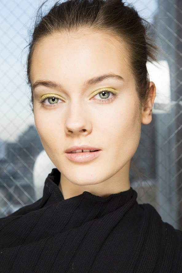 | Để tạo nên vẻ huyền bí cho người mẫu trong show diễn của Donna Karan, chuyên gia trang điểm Charlotte Tilbury giữ da thật ẩm và mịn, sau đó dùng eyeliner kẻ một đường thật mảnh cùng phấn mắt nhũ ánh kim phủ quanh mắt tạo hiệu ứng mắt khói mê hoặc. |