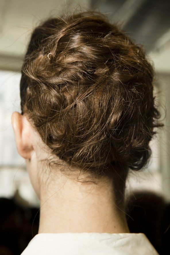 | Tuy phần trước gọn gàng nhưng phần tóc đằng sau của người mẫu trong show Jason Wu lại khá bù xù tạo cảm giác tự nhiên. |