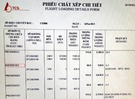 Đến nay, qua trao đổi thông tin điều tra giữa Việt Nam và Đài Loan đã xác định được, lô hàng ma túy khủng này xuất phát từ TP.HCM trong đêm 16/11 đi Đài Loan trên chuyến bay số hiệu CI5886 của hãng hàng không China Airlines.