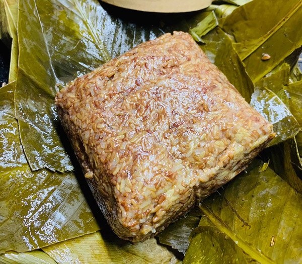Bánh chưng gấc có màu đỏ tượng trưng cho phú quý phát tài mang lại nhiều may mắn. Ảnh: Huyền Lê. |