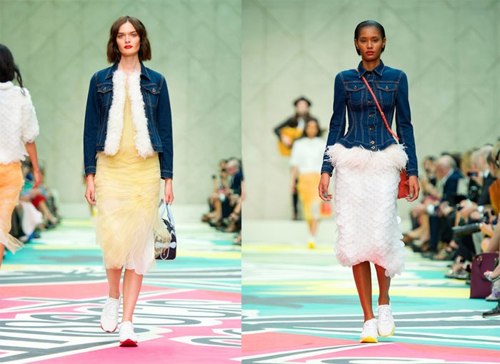 Sự kết hợp tưởng rất khác thường giữa áo khoác denim hiện đại, năng động và có phần “bụi bặm” với những chiếc váy xuyên thấu chất liệu sheer, voan, đính cườm, kết nơ đầy nữ tính trong bộ sưu tập xuân hè mới nhất của thương hiệu Burberry lại mang đến hiệu ứng hoàn toàn mới lạ và ấn tượng.