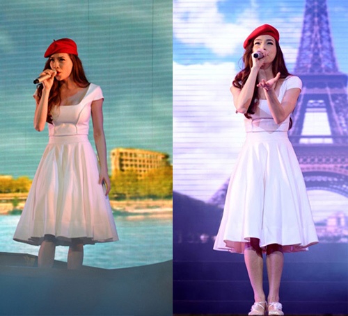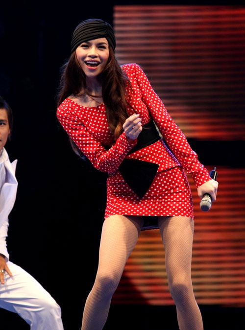 | Với gương mặt góc cạnh, kiểu mũ lệch này giúp Hà Hồ trở nên ấn tượng hơn trên sân khấu. |