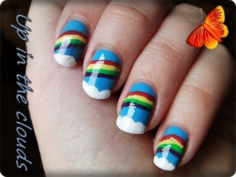 | 7 sắc cầu vồng trên nền trời xanh với mây trắng. |