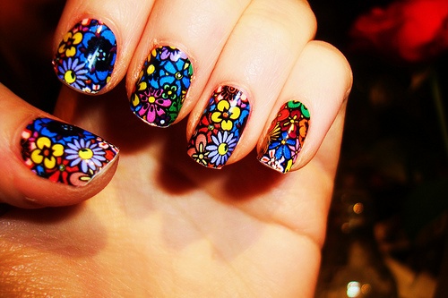 | Biến bộ móng tay thành tấm vải hoa rực rỡ với kiểu nail ấn tượng. |