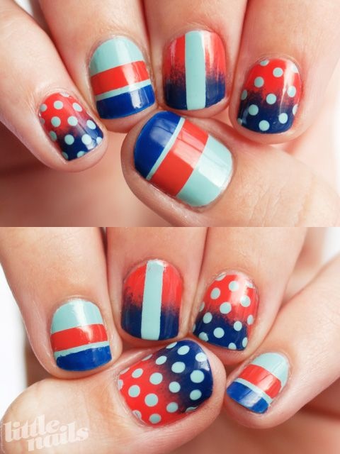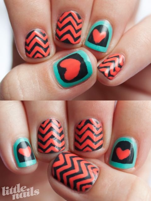 Màu cam, xanh nước biển, xanh ngọc được kết hợp một cách tinh tế tạo nên kiểu nail độc nhất vô nhị.