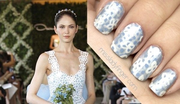 | Phái đẹp cũng có thể vẽ móng theo họa tiết của váy cưới cho "ton sur ton". |