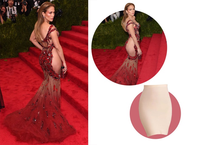 | Body suit màu da chính là bí mật để Beyonce tha hồ tạo dáng trên thảm đỏ Met Gala mà không sợ bị đánh giá là khoe da thịt quá đà. Mỹ nhân quyền lực nhất nhì showbiz quốc tế rất tinh ý khi chọn body suit tiệp với màu chiếc váy xuyên thấu lóng lánh của Givenchy. Kết hợp thêm khả năng định hình, loại nội y bó sát cơ thể này giúp bà mẹ 1 con thêm tỏa sáng giữa “rừng” chân dài nổi tiếng xinh đẹp của Hollywood. |