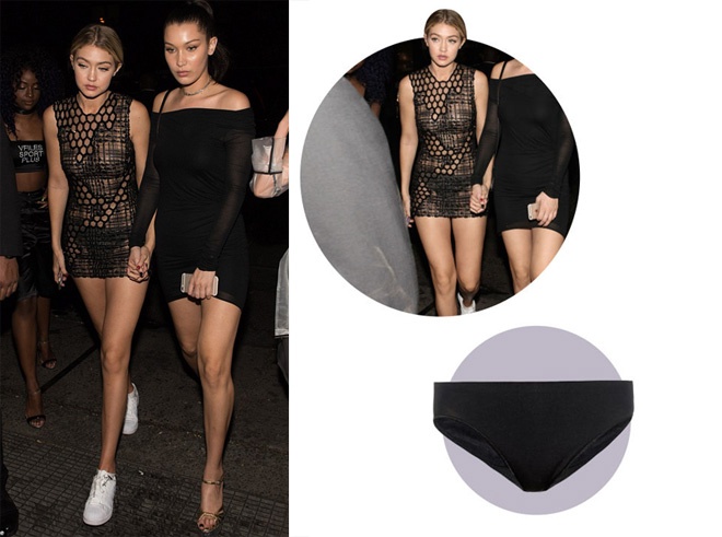 | Gigi Hadid tươi trẻ và năng động khi diện chiếc váy kín hở táo bạo trong bộ sưu tập haute couture của Atelier Versace xuân hè 2015. Loại quần lót cổ điển (granny panty) với phần bản to vừa phải đã giúp siêu mẫu nội y vừa gợi cảm, trẻ trung vừa lịch sự khi xuất hiện trên phố đông người. |