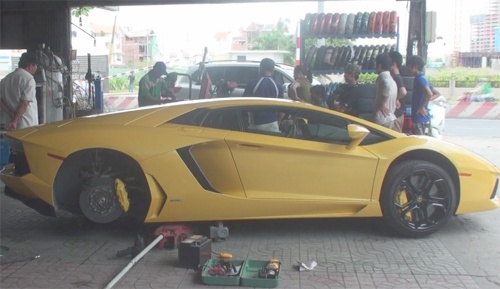 Tháng 8/2012, hình ảnh chiếc siêu xe Lamborghini Aventador đầu tiên ở Việt Nam thay lốp ngay trên vỉa hè Sài Gòn khiến nhiều người yêu xe lạ lẫm. Thậm chí, tờ báo chuyên về siêu xe của Mỹ là Gtspirit cũng đã đăng tải lại hình ảnh này với nhiều bình luận đầy bất ngờ. Họ cho rằng cách sửa siêu xe kiểu này chỉ có ở Việt Nam. Các thợ sửa chữa ô tô của garage này đã dùng kích để nâng phần sau của xe lên, sau đó dùng súng bắn ốc để tháo vành xe rồi thay lốp.
