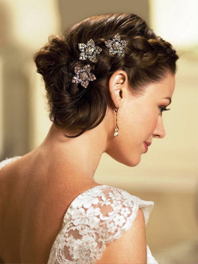 | Kiểu tóc quý phái này sẽ phát huy tác dụng tối đa nếu bạn kết hợp cùng váy áo cổ rộng, váy quây, cổ chữ V… Phối phụ kiện xinh xắn, tinh tế và cách tạo búi sắc sảo phía sau gáy sẽ giúp cô dâu thêm lộng lẫy và nổi bật. |