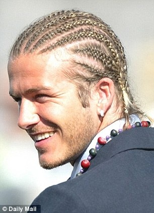 | Beckham được mệnh danh là cầu thủ có những bộ tóc thời trang nhất nhưng kiểu tóc tết như thế này thực sự tương phản với vẻ đẹp trai lãng tử của anh. |