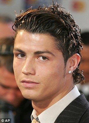 | Cũng giống như Beckham, Cristiano Ronaldo không chỉ nổi tiếng là cầu thủ xuất sắc mà còn bởi vẻ điển trai, lãng tử của mình. Nên người hâm mộ khá thất vọng khi Ronaldo diện kiểu tóc vuốt keo bóng nhưng lại rối lộn xộn và có phần hơi "quê mùa" này. |