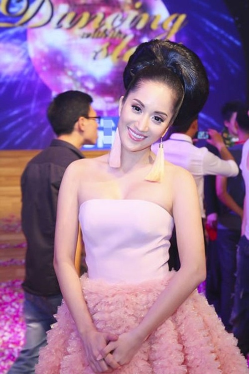 | Đi liền cùng chiếc váy cầu kì và đôi bông tai "dài dòng", kiểu đầu tạo khối khổng lồ của Khánh Thi chỉ khiến nữ giám khảo thêm phần nặng nề. |