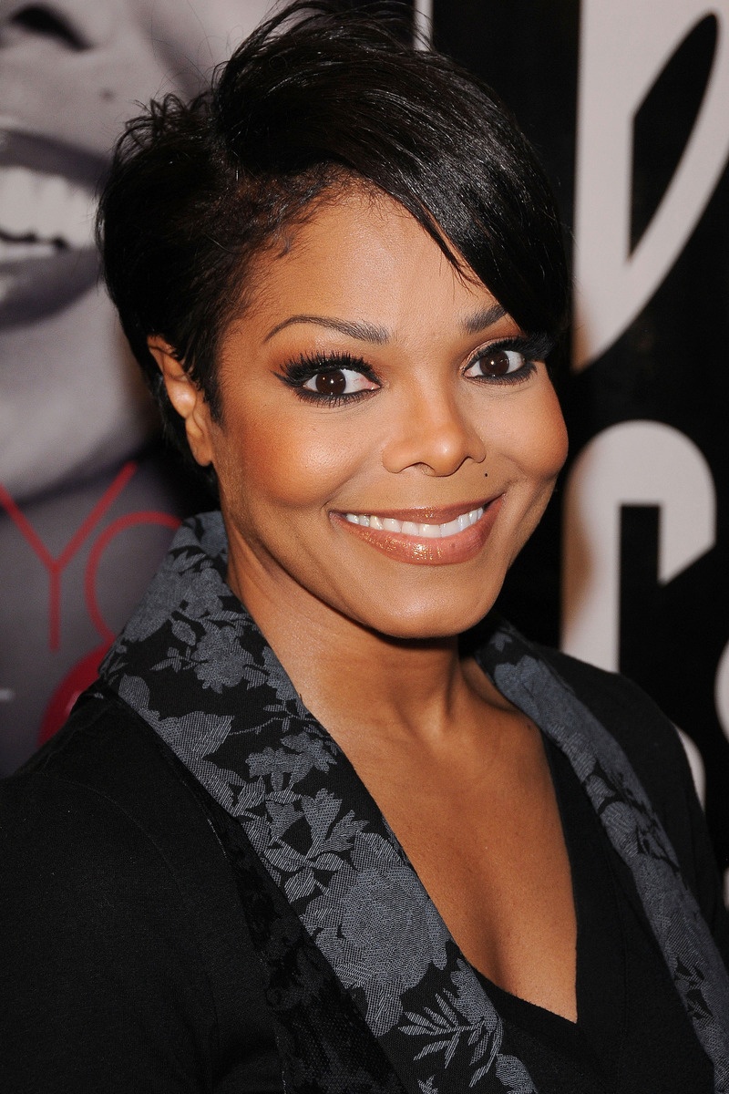 | Hơn nửa đời người với mái tóc đen dài, Janet Jackson trình làng kiểu tóc ngắn mạnh mẽ khi vừa tròn 44 tuổi. Trông cô rõ ràng trẻ đẹp và mới mẻ hơn rất nhiều. |
