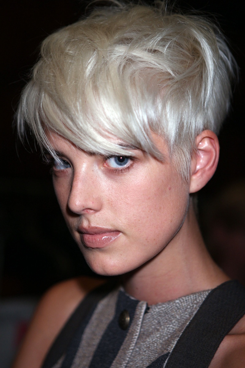 | Kiểu tóc pixie bạch kim chính là nét đưa cô nàng Agyness Deyn lên hàng siêu mẫu với vẻ đẹp lạ lùng không giống với bất cứ ai trong làng thời trang. |