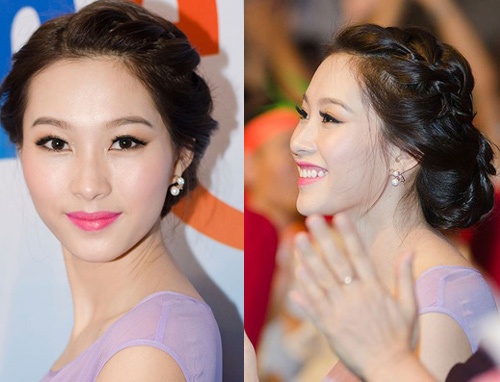 Tóc tết mái kiểu thiên thần rất đáng yêu của hoa hậu ThuThảo.