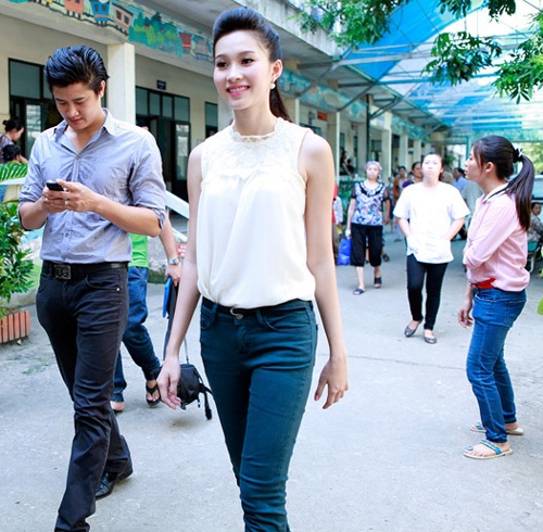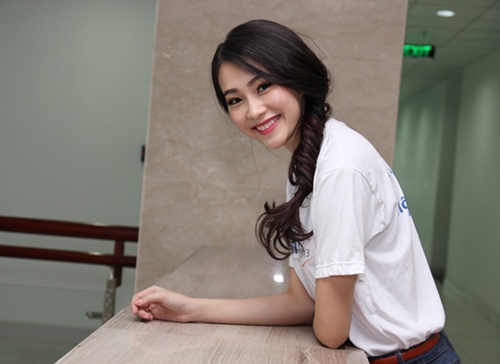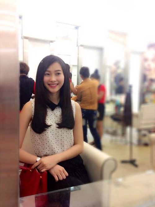 Hoa hậu đời thường với mái tóc thẳng mượt trẻ trung.