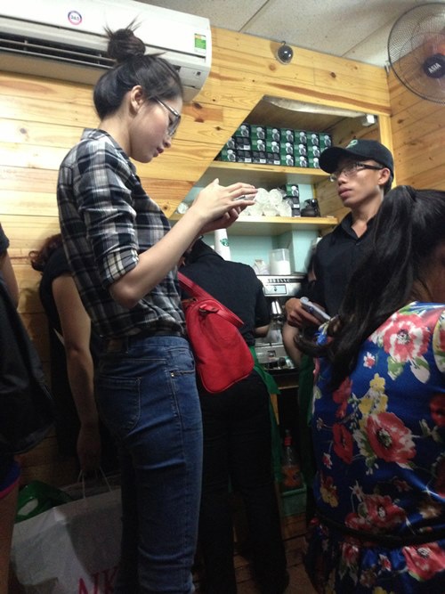 Hoa hậu Thu Thảo bị bắt gặp trên phố với kiểu tóc búi cao rất đơn giản, trẻ trung.
