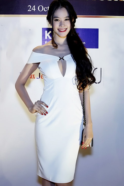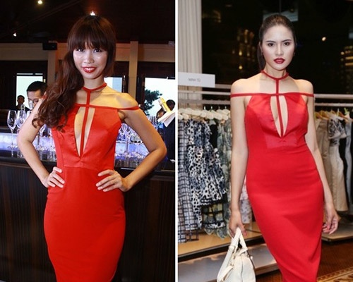 | Á hậu Linh Chi cũng học tập đàn chị khai thác cơ thể theo công thức cut-out ở ngực nhưng tế nhị và duyên dáng hơn. |