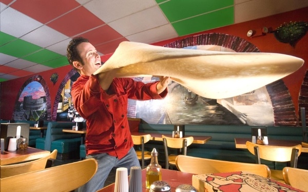 Đế bánh Pizza lớn nhất, hoàn thành nhanh nhất: Đầu bếp Tony Gemignani người Mỹ đã sử dụng 500g bột và chỉ mất 2 phút để tạo ra chiếc đế bánh Pizza có đường kính 84,33 cm tại một trung tâm thương mại ở Minneapolis, Minnesota, Mỹ ngày 20/4/2006. |