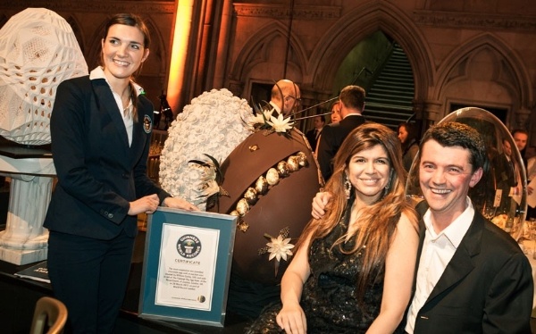 Quả trứng làm từ chocolate đắt nhất: Một quả trứng làm từ chocolate, trang trí trang sức quý giá là tác phẩm của các nghệ nhân William Curley, Amy Rose Curley, Alistair Birt, Sarah Frankland, Melissa Paul, Rhiann Mead (Vương quốc Anh) và Suzue Curley (Nhật Bản) đã được bán với mức giá kỉ lục 11.107 USD (không kèm trang sức) trong cuộc đấu giá tại Tòa án tư pháp Hoàng gia London tháng 3/2012. |