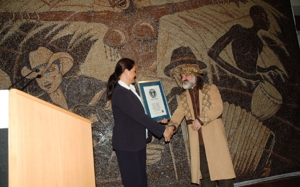 Bức tranh làm từ hạt cà phê lớn nhất: Bức tranh khảm từ hạt cà phê diện tích 25.18 m2 của tác giả Saimir Strati (người Albania) đã được ghi nhận vào kỉ lục Guinness cho tác phẩm tranh từ hạt cà phê lớn nhất thế giới. Hiện, bức tranh được đặt tại khách sạn Rogner Europa Park, Tirana, Albania. Kỉ lục được xác lập ngày 12/12/2011. |