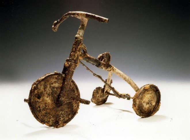 Xe đạp trong ảnh trở thành biểu tượng gợi nhớ những ký ức kinh hoàng ngày 6/8/1945, khi quân đội Mỹ thả quả bom Little Boy có khối lượng 4.000 kg xuống thành phố Hiroshima của Nhật Bản. Tatsuharu Kodama, một nạn nhân sống sót, đã viết sách về câu chuyện phía sau chiếc xe đạp và xuất bản nó vào năm 1995. Cuốn sách, với tựa đề "Chiếc xe đạp ba bánh của Shin", nói về Shinichi Tetsutani, cậu bé 3 tuổi thiệt mạng trong vụ ném bom. Bố của Shin chôn cậu cùng xe đạp. Đây là một trong rất nhiều kỷ vật tại Bảo tàng Hòa Bình Hiroshima. |