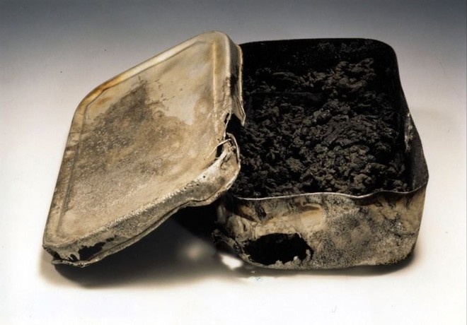 Vài ngày sau vụ ném bom, mẹ của Shigeru Orimen, một học sinh của trường trung học cơ sở Hiroshima, tìm thấy thi thể cậu bé. Em vẫn giữ chặt hộp cơm dưới bụng. Quả bom biến mọi thứ trong hộp cơm của em thành than. |