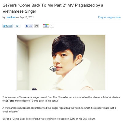 | Cao Thái Sơn và nghi án đạo Se7en được đưa lên Soompi. |