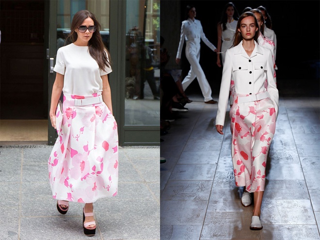 | Cũng như màu hồng yểu điệu, họa tiết hoa nữ tính khó có dịp xuất hiện trên trang phục của Victoria Beckham. Ngoài hai chiếc đầm floral hồng ngọt lịm như trên, chỉ vài trường hợp khác bà Beck mới diện họa tiết này, nhưng trong các thiết kế phá cách, tinh tế đúng kiểu thương hiệu Victoria. |
