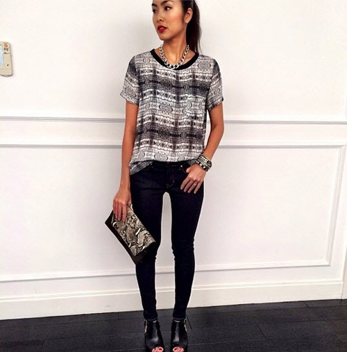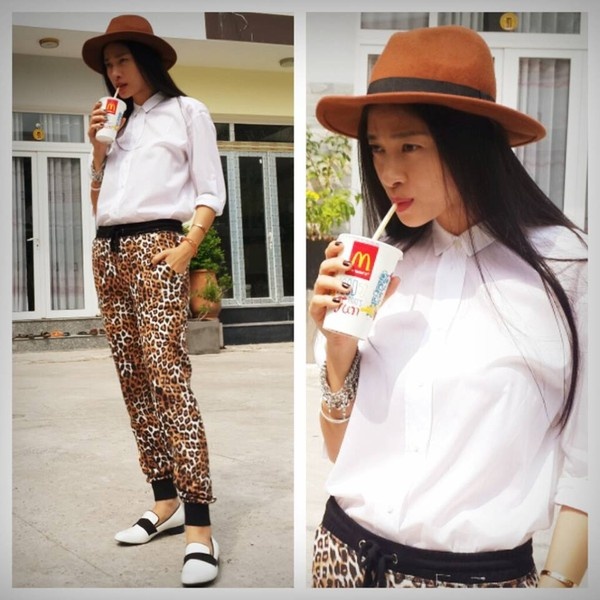 Trang phục đường phố của Vân Ngô bị mất điểm khi mix giày bệt với chiếc quần da báo.