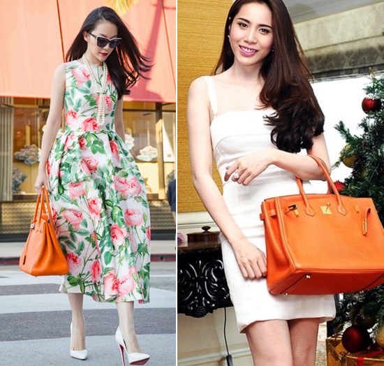 | "Chim công làng múa" Linh Nga và Thủy Tiên rạng rỡ khi sắm cho mình túi cam thuộc dòng Hermes Birkin. |