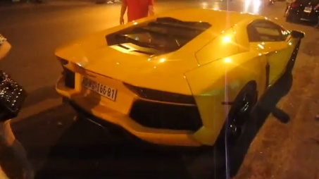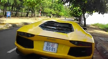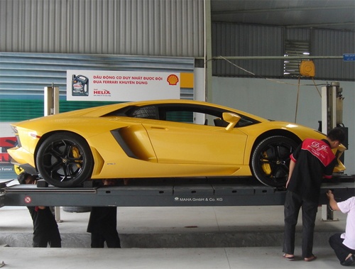 | Đầu tháng 6/2012, siêu xe Lamborghini Aventador LP700-4 đầu tiên, màu vàng xuất hiện trên đường phố Sài Gòn, với biển tạm "xe mới nhận". |