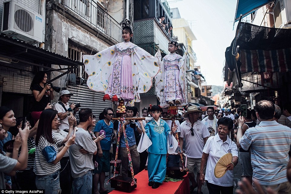 Lễ hội cướp bánh bao Trường Châu, Trung Quốc: Lễ hội mùa xuân này diễn ra hàng năm ở đảo Trường Châu, Hong Kong. Có lịch sử từ 100 năm trước, lễ hội được dành để cảm tạ những vị thần đã đánh đuổi bệnh dịch ra khỏi hòn đảo này. Ngày nay, đây là một trong những sự kiện thu hút nhiều du khách tới Hong Kong. Lễ hội có nhiều hoạt động hấp dẫn trong 4 ngày, như múa lân, múa sư tử, biểu diễn nhạc kịch, nhào lộn, diễu hành. Một số trẻ em được lựa chọn hóa thân thành các vị thần. Ảnh: Getty Images. |