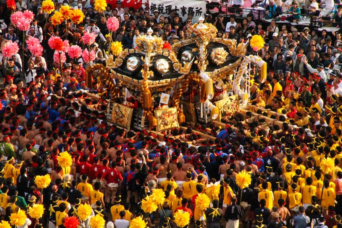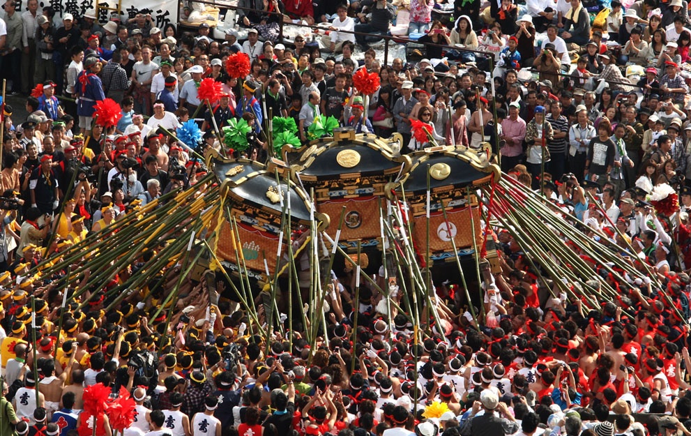 Lễ hội Nada no Kenka, Nhật Bản: Lễ hội độc đáo này được tổ chức tại đền Matsubara Hachiman, thuộc thị trấn Shirahama, Himeji, Kansai. Các kiệu được trang hoàng lộng lẫy, do những người đàn ông trên 35 tuổi khiêng. Ảnh: Tokyodesu. |
