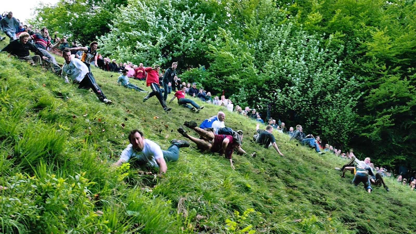 Lễ hội lăn pho mát, một trong những lễ hội kỳ quái nhất thế giới, xuất hiện từ thế kỷ 15 và diễn ra thường niên trên đồi Cooper (Anh). Hình thức của lễ hội này là biến tấu từ nghi thức thả các vật như bánh, kẹo từ trên đồi xuống với ý nghĩa cầu mong mùa màng bội thu từ xa xưa. Trong lễ hội, người ta sẽ lăn một khoanh pho mát từ đỉnh đồi và nhiệm vụ của những thí sinh tham dự là đuổi theo miếng pho mát đó. Ảnh: BBC.