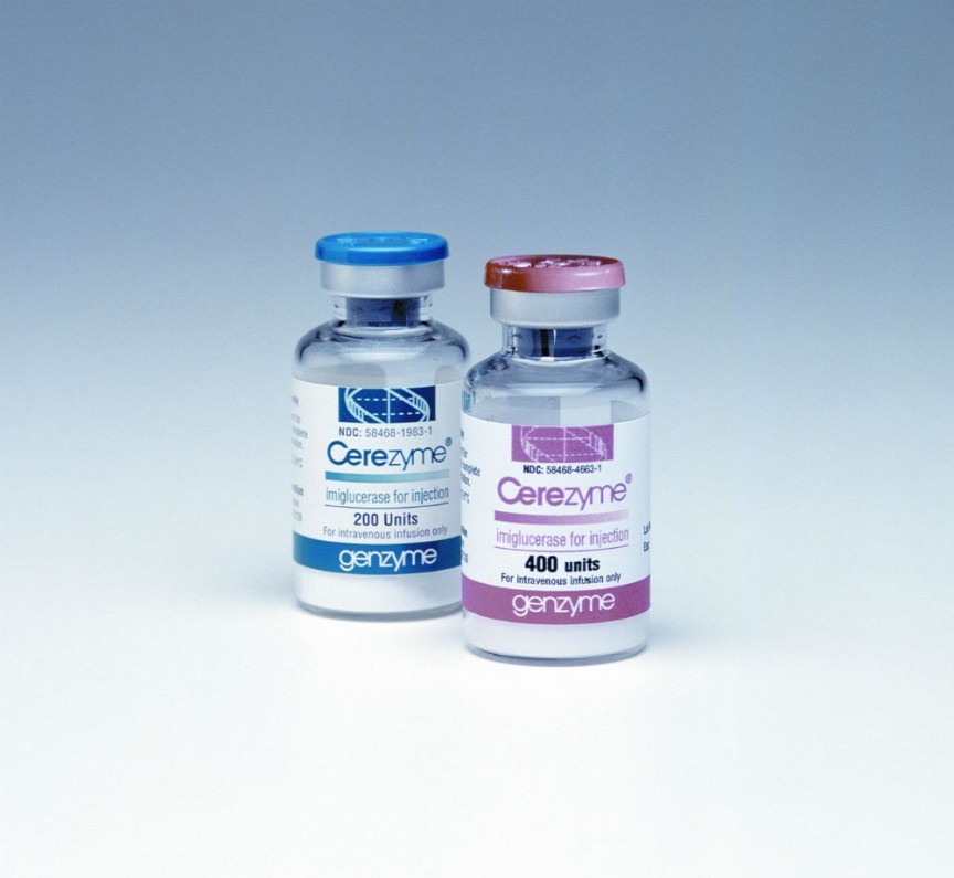 Cerezyme. Được sản xuất trong quá trình ADN tái tổ hợp sử dụng buồng trứng của chuột, Cerezyme có công dụng ngăn chặn chất béo hình thành trong gan, phổi, tủy, lách và não. Loại thuốc này là liệu pháp thay thế enzyme cho một căn bệnh hiếm gặp có tên là Gaucher, gây ra sự gián đoạn của các quá trình quan trọng bên trong cơ thể. Trên thế giới, 1/50.000 hoặc 100.000 người là nạn nhân của căn bệnh này. Gaucher có 3 thể, trong đó loại 2 và 3 gây ra các vấn đề có khả năng tử vong cao do tổn thương hệ thống thần kinh và não. Loại 1 có các triệu chứng trong phạm vi mức độ nghiêm trọng như thiếu máu, dễ bầm tím, xương giòn và bệnh phổi. Giá thuốc sử dụng trong một năm 200.000 USD. |