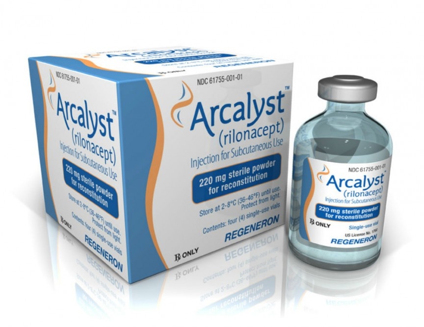 Arcalyst được sử dụng để điều trị các vấn đề viêm trong cơ thể gây ra do chứng rối loạn di truyền hiếm gặp, hội chứng FCAS và hội chứng Muckle-Wells (MWS). Cả hai căn bệnh này làm gia tăng sản xuất một loại protein được gọi là cryopyrin, có thể gây nên một phản ứng viêm mạnh không cần thiết, đặc biệt trong thời tiết lạnh. MWS có thể làm tổn thương thận nếu không được chữa trị kịp thời trong khi FCAS không gây ra vấn đề sức khỏe nghiêm trọng nào. Arcalyst giúp đối phó với các triệu chứng như phát ban, đau khớp, và ngăn ngừa tổn thương thận. Giá thuốc sử dụng trong một năm 250.000 USD. |