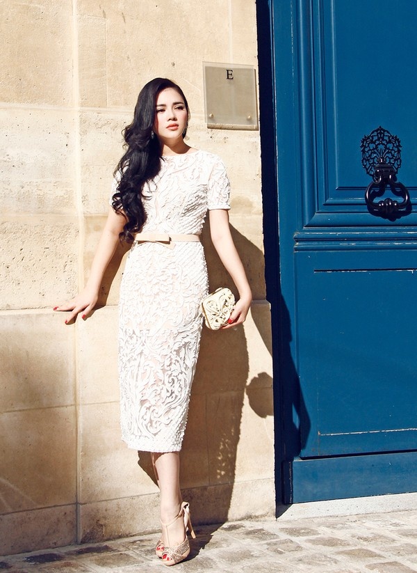 | Với bộ đồ này, Đinh Ngọc Diệp nên chọn cho mình những chiếc túi trẻ trung và "chất" một chút, với gam màu cùng tone nhưng nhạt với màu váy để tạo cảm giác hài hoà cho cả set đồ. Túi da dáng nhỏ hoặc túi trong suốt, đính đinh tán to bản cùng dây đeo kim loại dài là gợi ý cô nên tham khảo. |