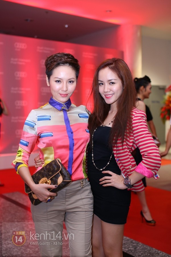 Thúy Hạnh tuy không hề sai với dáng cluth nhỏ nhắn và giản tiện. Tuy nhiên, màu đỏ bungurdy dường như lại lệch tông với chiếc váy họa tiết ánh kim gam màu nude của người đẹp.